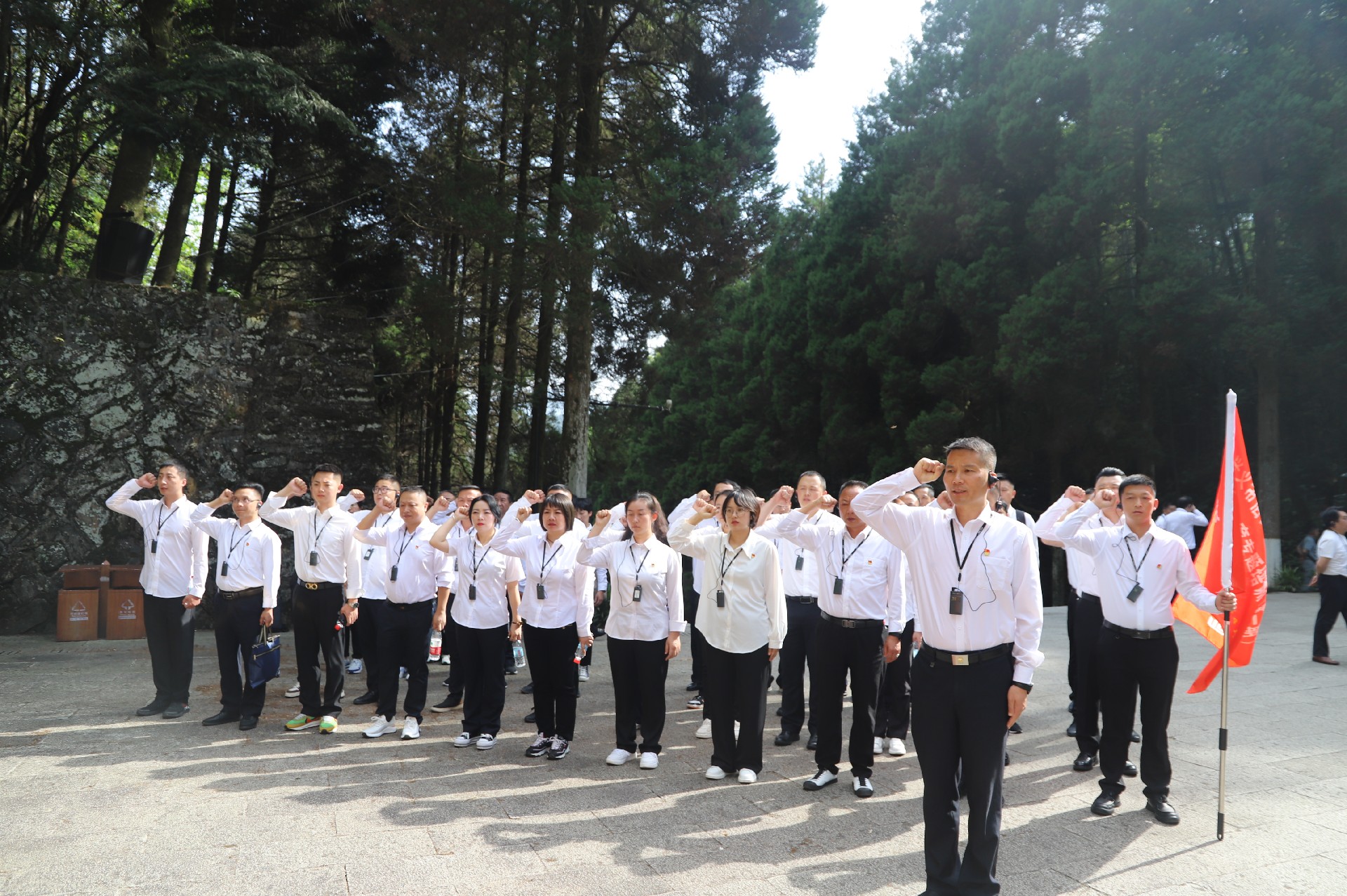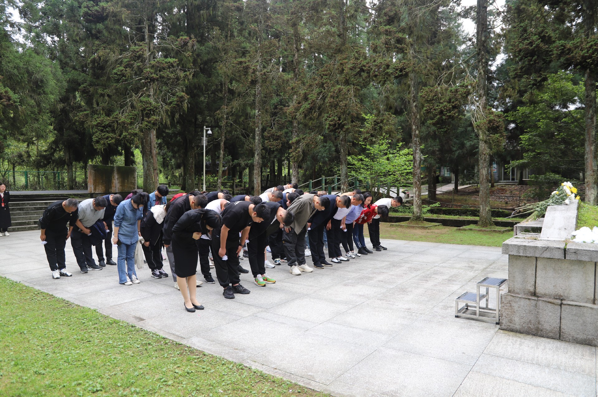 井岡山是革命的山、戰(zhàn)斗的山,也是英雄的山、光榮的山。井岡山革命斗爭中,4萬多名紅軍戰(zhàn)士壯烈犧牲,而僅有15744名烈士留下姓名。在井岡山革命烈士陵園現(xiàn)場授課中,講解員為大家解說了一個(gè)個(gè)令人動容的故事,尤其在聽了伍若蘭與腹中的胎兒一同被敵人殘忍殺害了的故事后,不少學(xué)員都紅了眼眶,仿佛悲壯的畫面就在眼前。莊嚴(yán)的紀(jì)念碑前,全體學(xué)員重溫入黨誓詞,懷著敬仰的心情向革命烈士敬獻(xiàn)花圈,低頭默哀、三鞠躬,用簡單的吊唁儀式緬懷革命先烈。