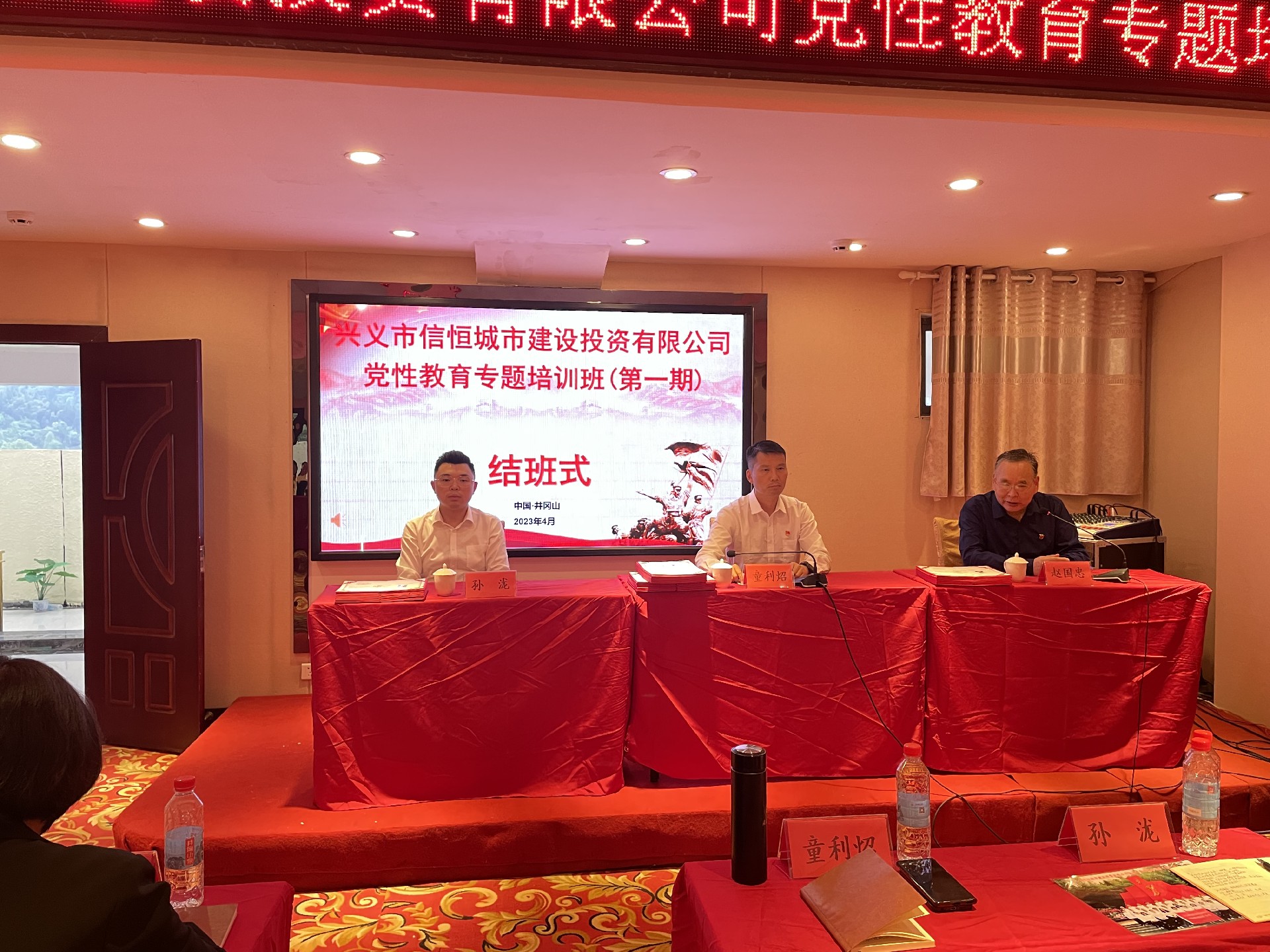 市信恒城投公司紀(jì)檢委員童利炤、副總經(jīng)理孫瀧同志、井岡山干部學(xué)院特聘教授趙國忠為大家頒發(fā)結(jié)業(yè)證書。