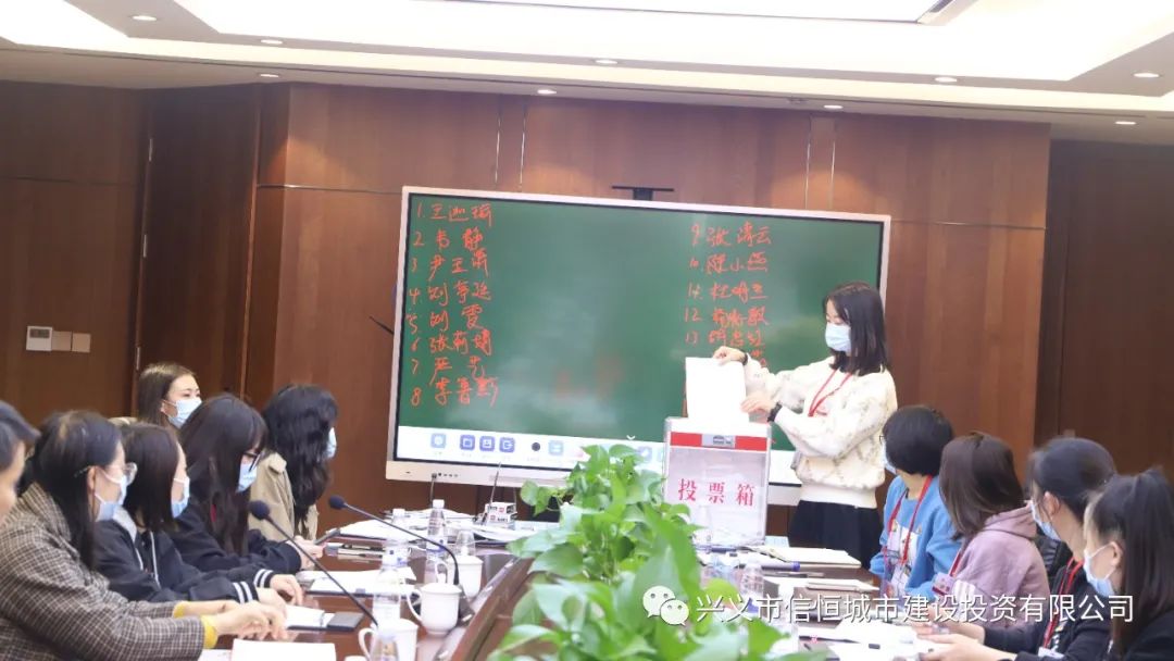 大會通過無記名差額投票選舉的方式選舉胡忠紅、張莉婧、魯先珍、嚴藝、李魯黔、張清云、劉亭廷、劉 雯、楊兆敏、陳小燕、韋靜、杜明蘭、尹玉瀟、王迦瑜、黃連婭等15名同志為市信恒城投公司婦聯(lián)第一屆執(zhí)委會委員。并召開第一屆執(zhí)行委員會第一次全體會議,通過選舉,韋靜同志當選為市信恒城投公司婦聯(lián)主席,魯先珍、嚴藝兩位同志當選為市信恒城投公司婦聯(lián)副主席。