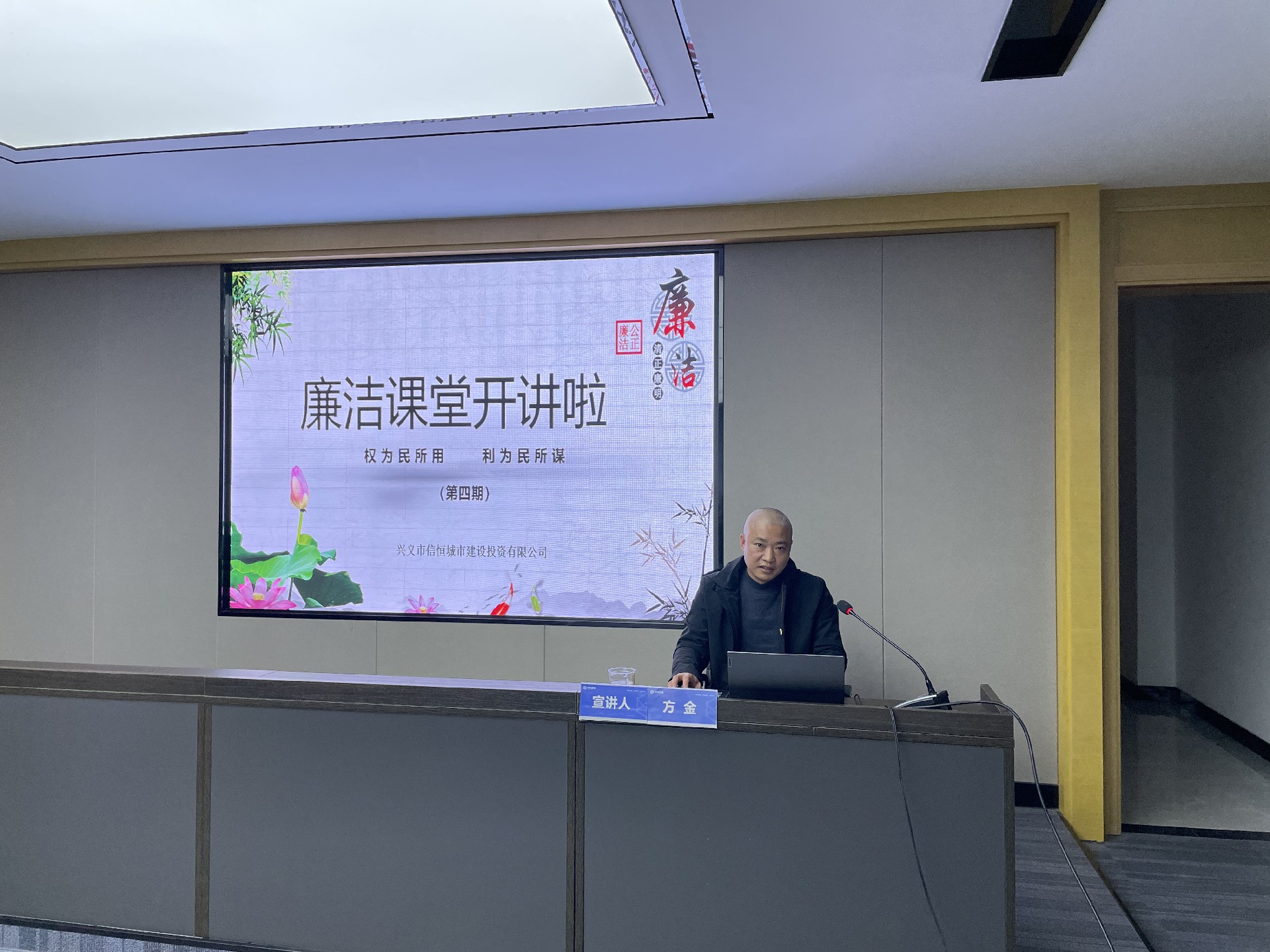 2023年2月23日,興義市信恒城市建設(shè)投資有限公司(以下簡稱“市信恒城投公司”)“貫徹黨的二十大精神·營造風(fēng)清氣正國企”廉潔課堂開講啦第四期宣講由市信恒城投公司下屬子公司興義市同為建筑工程有限公司經(jīng)理方金主講,特邀了公司紀(jì)檢委員童利炤、公司中層以上干部、黨建指導(dǎo)員、紀(jì)檢監(jiān)察專員等同志參加。