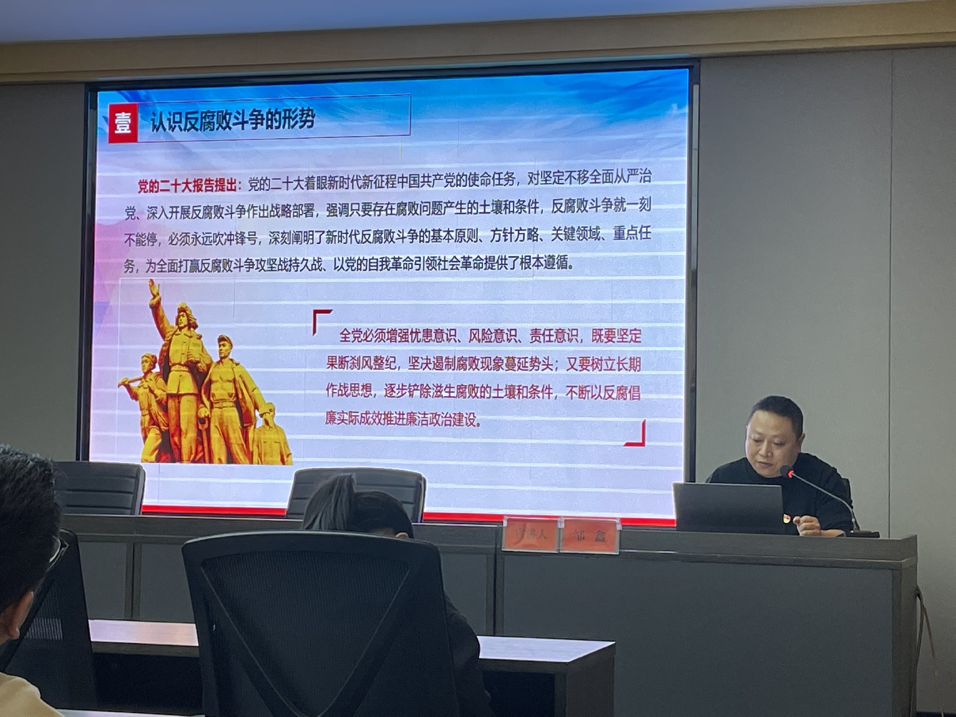 本期開(kāi)展的主題為“反貪反腐·踐行廉政文化”,鄒鑫同志通過(guò)多個(gè)違法違規(guī)融資典型腐敗案例進(jìn)行了深度分析,并就如何防止國(guó)有企業(yè)融資工作領(lǐng)域腐敗進(jìn)行了詳細(xì)講解。
