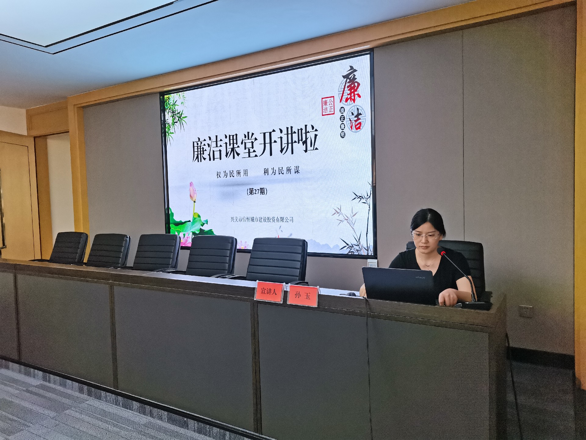2023年8月3日,興義市信恒城市建設(shè)投資有限公司(以下簡稱“市信恒城投公司”)“貫徹黨的二十大精神·營造風(fēng)清氣正國企”第二十七期“廉潔課堂開講啦”持續(xù)開講。本期宣講由市信恒城投公司財(cái)務(wù)部副部長孫玉主講,特邀公司財(cái)務(wù)總監(jiān)田玉山、中層以上干部、黨建指導(dǎo)員、紀(jì)檢監(jiān)察專員、部分員工等同志參加。