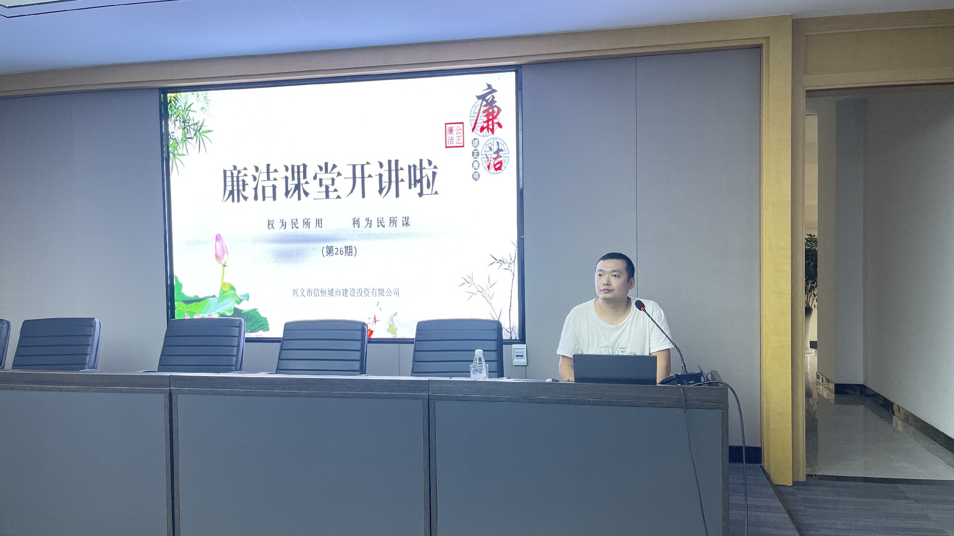 為全面貫徹落實(shí)黨中央“黨要管黨、從嚴(yán)治黨”的總體部署和要求,認(rèn)真落實(shí)“兩個(gè)責(zé)任”,進(jìn)一步增強(qiáng)集團(tuán)公司各級(jí)領(lǐng)導(dǎo)干部和全體黨員提高認(rèn)識(shí)、轉(zhuǎn)變作風(fēng)、遵章守紀(jì)、廉潔從業(yè),增強(qiáng)拒腐防變意識(shí)。2023年7月27日,興義市信恒城市建設(shè)投資有限公司(以下簡稱“市信恒城投公司”)“貫徹黨的二十大精神·營造風(fēng)清氣正國企”第二十六期“廉潔課堂開講啦”持續(xù)開講。本期宣講由市信恒城投公司財(cái)務(wù)部副部長黃辰主講,特邀公司財(cái)務(wù)總監(jiān)田玉山、中層以上干部、黨建指導(dǎo)員、紀(jì)檢監(jiān)察專員、部分員工等人員參加。