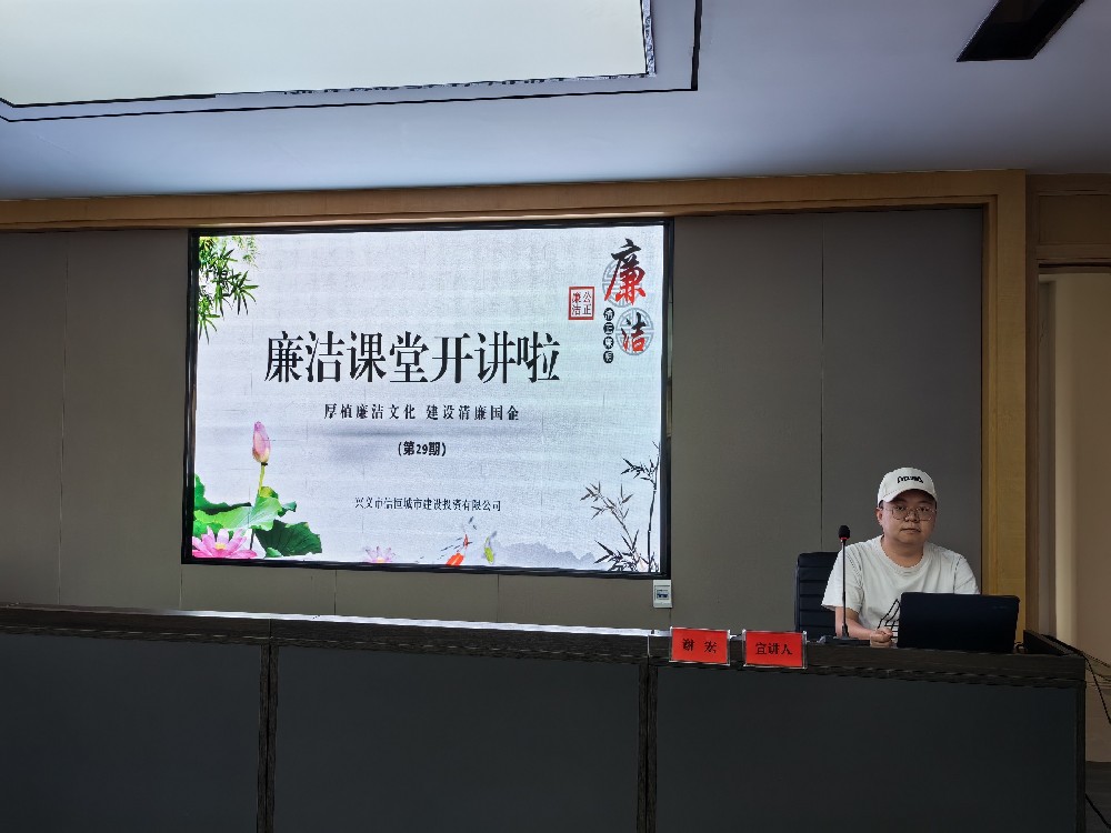 2023年8月17日興義市信恒城市建設投資有限公司(以下簡稱“市信恒城投公司”)“貫徹黨的二十大精神·營造風清氣正國企”第二十九期“廉潔課堂開講啦”持續(xù)開講。本期宣講由市信恒城投公司工程部副部長謝宏主講,特邀了公司中層以上干部、黨建指導員、紀檢監(jiān)察專員等同志參加。