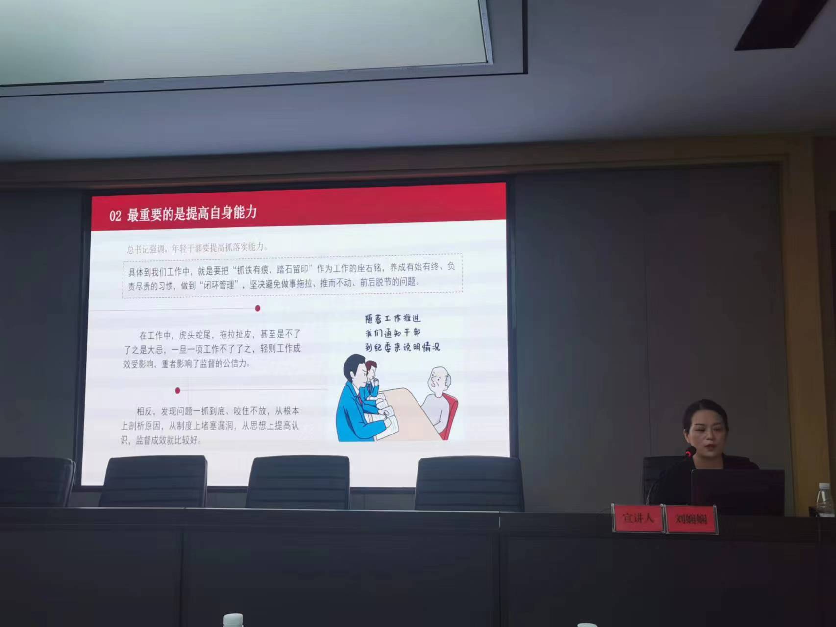 本次宣講的主題為:“青年干部要扣好人生的第一??圩印?,劉嫻嫻同志通過以下四個(gè)方面與大家進(jìn)行分享。