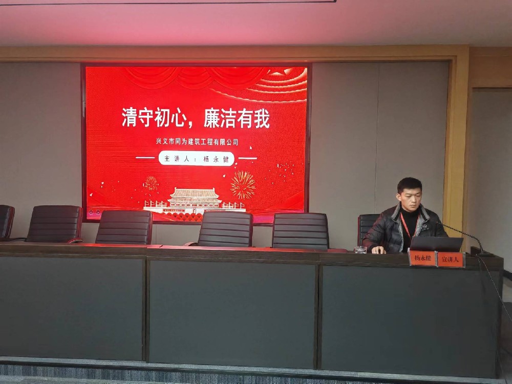 2024年1月4日,興義市信恒城市建設(shè)投資有限公司(以下簡稱“市信恒城投公司”)“貫徹黨的二十大精神·營造風(fēng)清氣正國企”廉潔課堂開講了,第四十八期宣講由市信恒城投公司下屬子公司興義市同為建筑工程有限公司副經(jīng)理?xiàng)钣澜≈髦v,特邀公司中層以上干部、黨建指導(dǎo)員、紀(jì)檢監(jiān)察專員等同志參加。