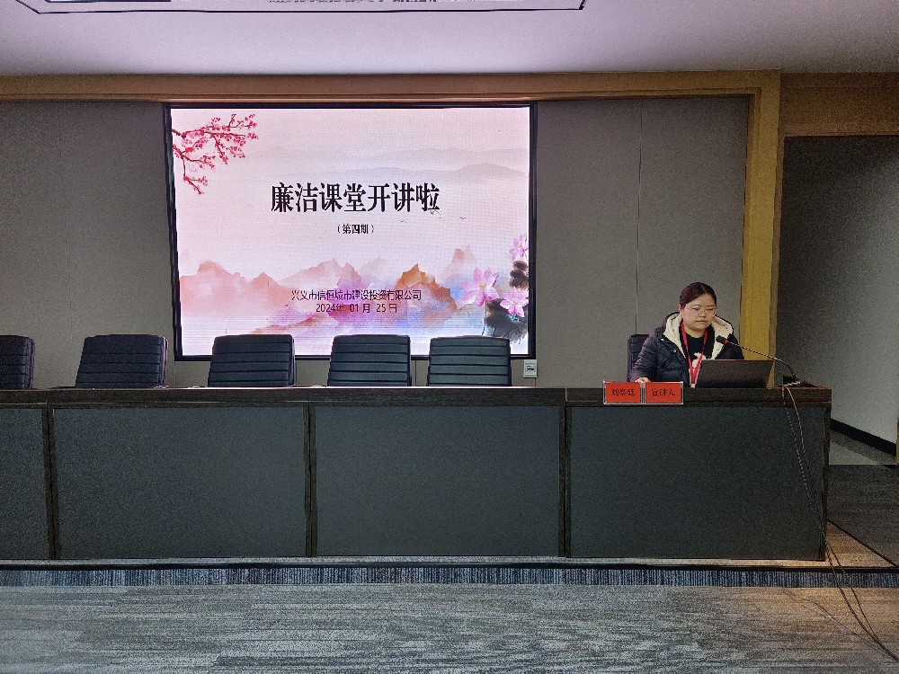 2024年1月25日,興義市信恒城市建設(shè)投資有限公司(以下簡稱“市信恒城投公司”)“貫徹黨的二十大精神·營造風(fēng)清氣正國企”第五十一期“廉潔課堂開講啦”持續(xù)開講。本期宣講由市信恒城投公司下屬子公司興義市同為建筑工程有限公司黨建指導(dǎo)員劉亭廷主講,特邀公司中層以上干部、黨建指導(dǎo)員、紀(jì)檢監(jiān)察專員及部分員工等人員參加。