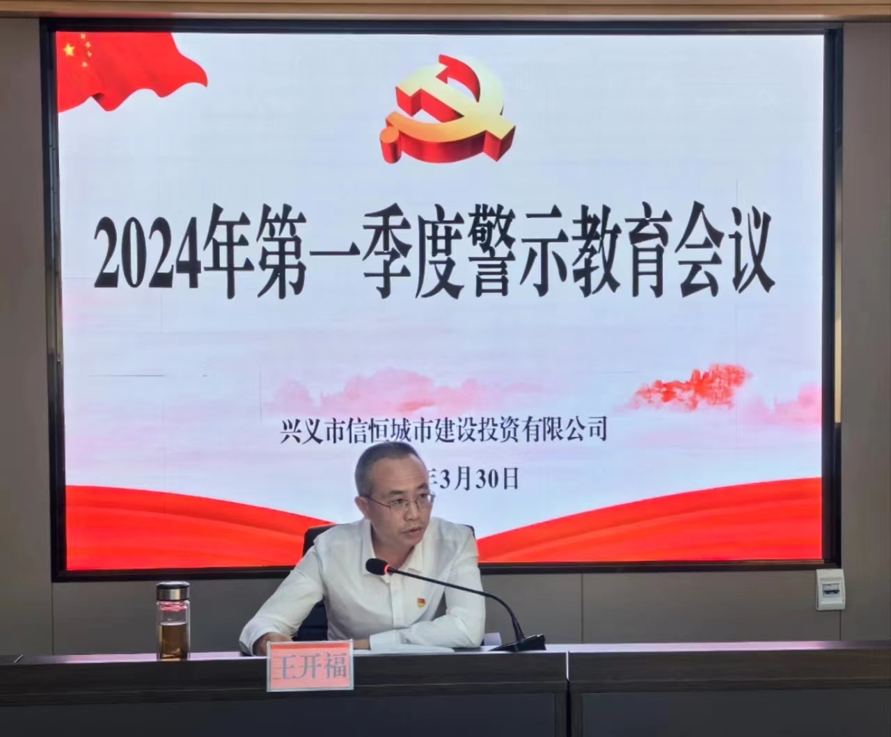 為進一步加強廣大黨員干部的廉潔教育,時刻提醒黨員干部在工作中堅定信念,筑牢思想防線,推進公司黨風廉政建設和反腐敗斗爭向縱深推進。2024年3月30日,興義市信恒城市建設投資有限公司(以下簡稱"市信恒城投公司")召開2024年第一季度黨風廉政警示教育大會。本次會議特邀了興義市紀委市監(jiān)委派駐第六紀檢組組長王開福同志為大家上警示教育課,市信恒城投公司紀檢委員童利炤同志主持會議,支部書記楊怡同志、領導班子、支委成員、各部門及子公司正副職、黨員代表、財務等關鍵崗位人員參加會議。