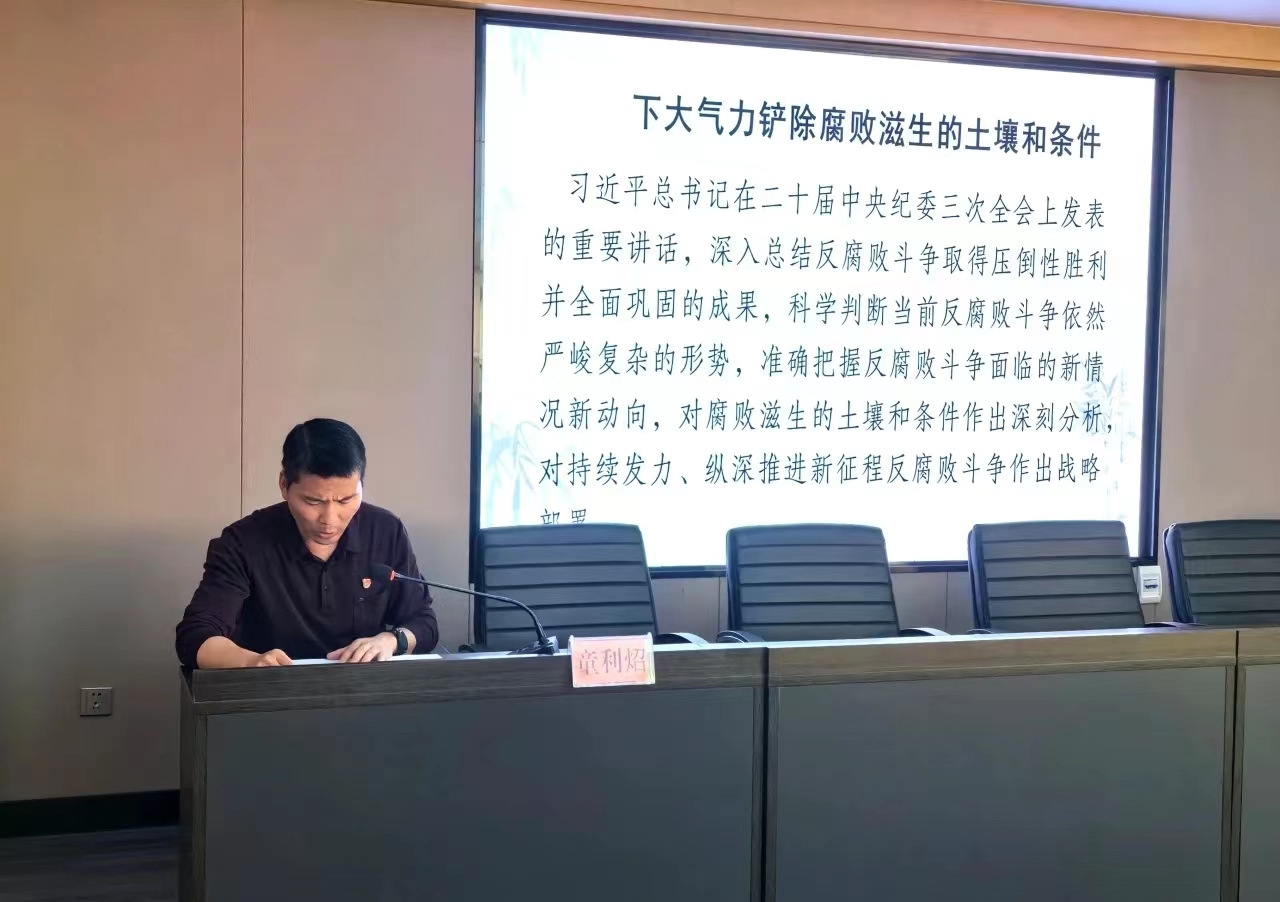 市信恒城投公司紀檢委員童利炤同志帶領大家學習習近平總書記在二十屆中央紀委三次全會上發(fā)表重要講話,深入領會其關于黨的自我革命重要思想的精髓要義和實踐要求,堅決打贏反腐敗斗爭攻堅戰(zhàn)持久戰(zhàn)。隨后集中觀看了廉政教育警示片《折翼的青春》,警醒全體干部職工要以案為鑒、以案明紀、以案促改,用身邊事教育身邊人,始終保持警鐘長鳴。