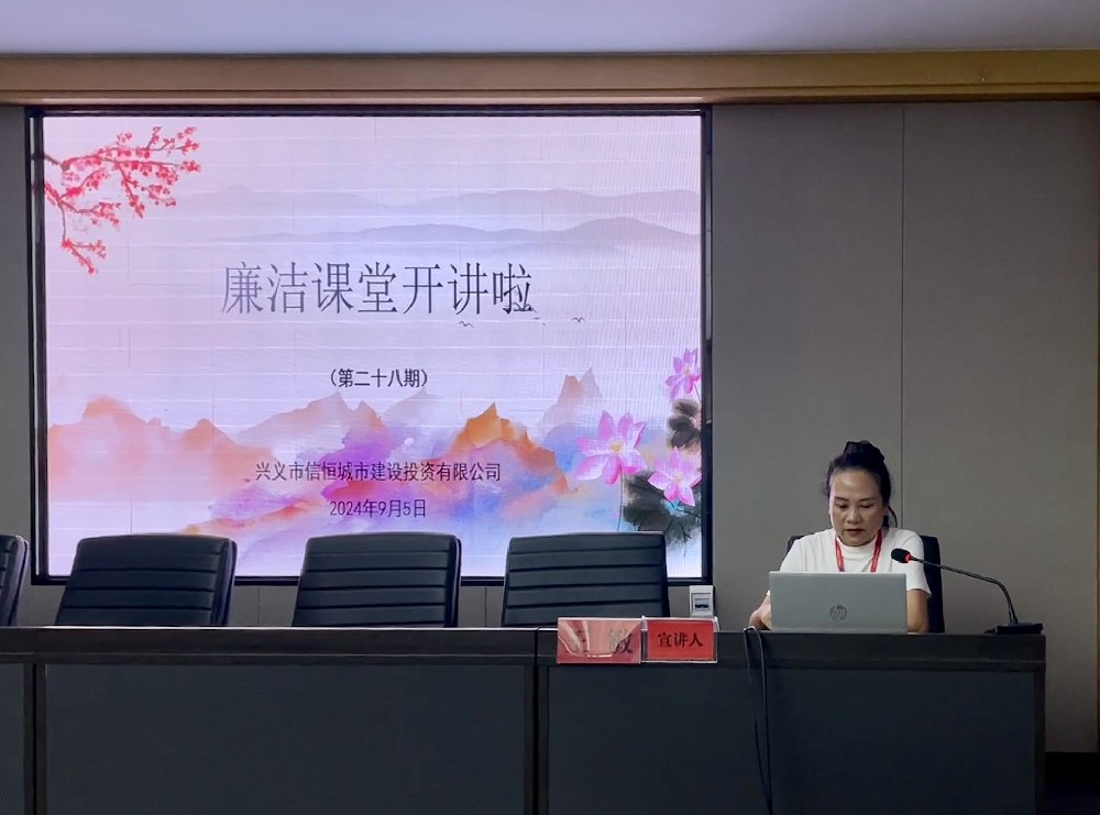 2024年9月5日,興義市信恒城市建設投資有限公司(以下簡稱“市信恒城投公司”)第二十八期“加強行政管理工作 做好新時代“守心人””廉潔課堂開講啦持續(xù)開講。第二十八期宣講由市信恒城投公司下屬子公司興義市偉圖智慧科技有限公司副經(jīng)理王敏同志主講,王敏同志結合警示教育短片,圍繞國有企業(yè)行政管理工作的主要特點、國有企業(yè)行政管理人員應具備的素養(yǎng)、國有企業(yè)行政管理工作要抓好執(zhí)行部門建設三個方面與大家共同學習。特邀公司中層以上干部、黨建指導員、紀檢監(jiān)察專員及部分職員參加。