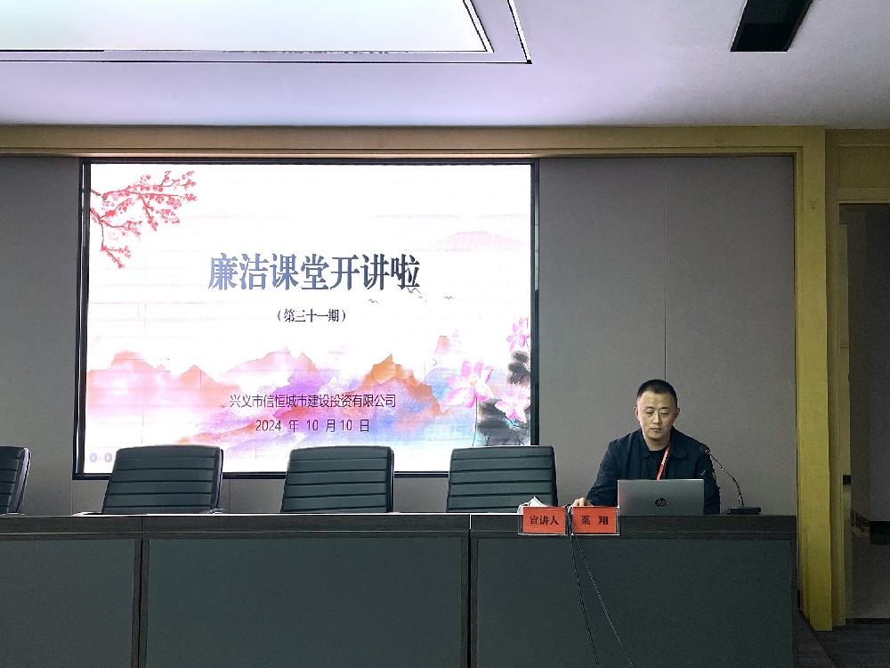 2024年10月10日,興義市信恒城市建設(shè)投資有限公司(以下簡(jiǎn)稱“市信恒城投公司”)2024年第31期“弘揚(yáng)西柏坡精神 傳承紅色基因”廉潔課堂開(kāi)講啦持續(xù)開(kāi)講。本期宣講由市信恒城投公司下屬子公司興義市偉圖智慧科技有限公司副經(jīng)理粟翔同志主講,特邀公司中層以上干部、黨建指導(dǎo)員、紀(jì)檢監(jiān)察專員及部分職員參加。