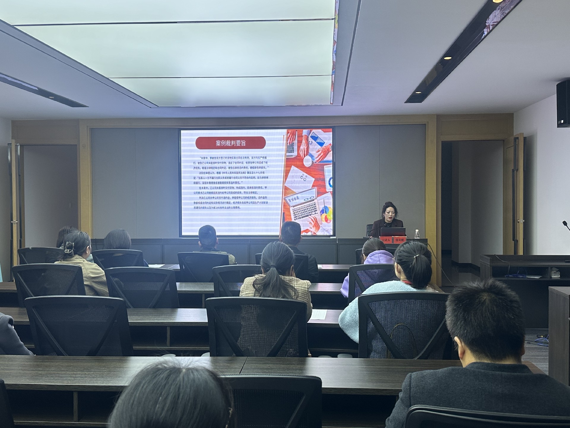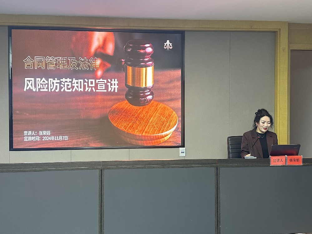 宣講中,張榮娟同志從合同的起草、審查、簽訂、履行、終止等領域可能出現(xiàn)的法律風險,結(jié)合案例分享,為大家揭示企業(yè)在合同方面可能面臨的實際挑戰(zhàn),從合同條款的清晰性、審批流程的規(guī)范性、合同管理的重要性等諸多領域做了風險提示及要求,以確保企業(yè)在依法治企中健康有序發(fā)展。