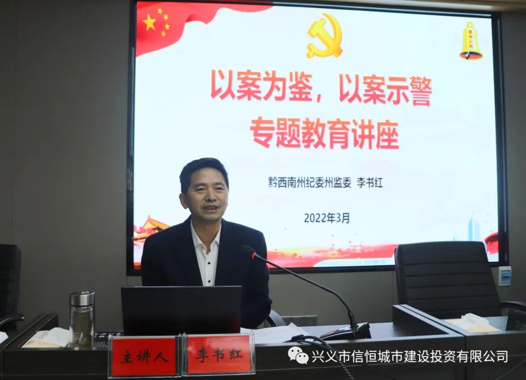 為深入貫徹落實習近平總書記關于黨風廉政建設和反腐敗斗爭重要講話精神,進一步引導廣大黨員干部以案為鑒、警鐘長鳴,筑牢拒腐防變的思想防線,持續(xù)凈化政治生態(tài)。2022年3月31日,興義市信恒城市建設投資有限公司(以下簡稱市信恒城投公司)召開2022年第一季度黨風廉政警示教育大會。黨支部書記、董事長、總經(jīng)理楊怡主持會議。