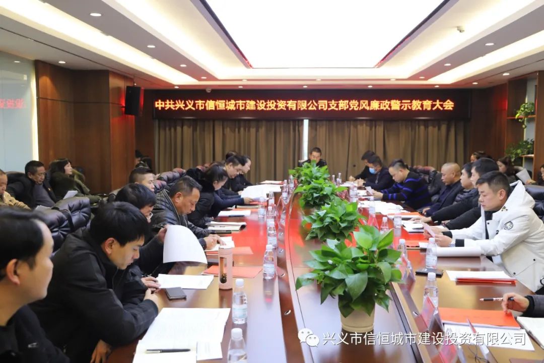 為進一步加強黨風廉政建設,做到反腐倡廉常抓不懈,拒腐防變警鐘長鳴。2020年12月30日,興義市信恒城市建設投資有限公司在匯金中心15樓會議室召開2020年黨風廉政警示教育大會。支部紀檢委員童利炤主持會議,市紀委市監(jiān)委派駐第六紀檢監(jiān)察組組長黃有政出席會議,全體黨員、入黨積極分子、公司中層干部參加會議。